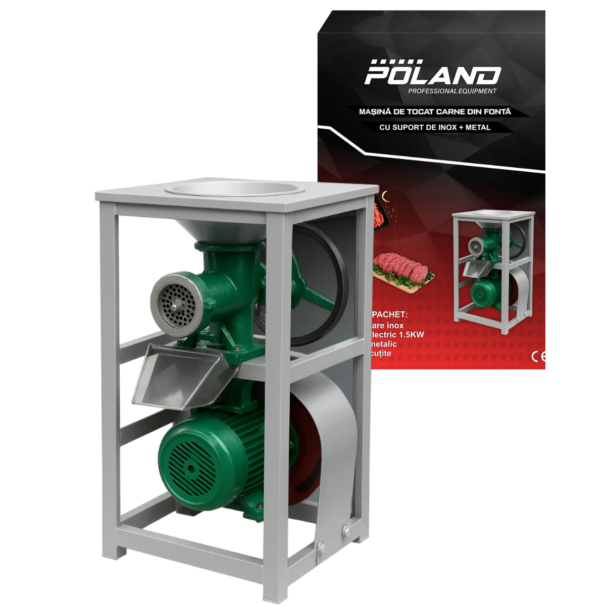 Masina de tocat carne Poland este construita pentru performanta si durabilitate, fiind ideala pentru uz intens. Constructia robusta din fonta si cadrul metalic cu suport din inox asigura stabilitate si rezistenta in timp. Motorul electric puternic de 1.5KW permite o tocare rapida si uniforma a carnii, oferind o productivitate excelenta de pana la 5 kg/minut.
